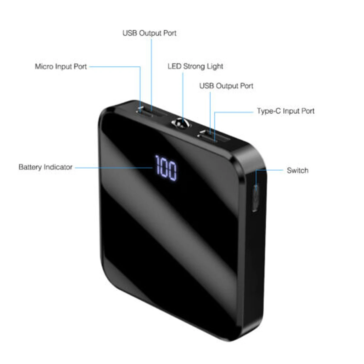 3 x Output Interface: Apple Interface, Micro USB, Type C, USB Input Interface:Micro USB, USB Type C Type:ultra slim, Fast Charging, High Capacity, With built-in cable, Flash Light, USB universal Battery Type: Grade A polymer battery Weight:300g Socket Type:USB PORT, Universal USB socket Features: With short circuit, over charge, over discharge, over current etc